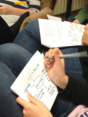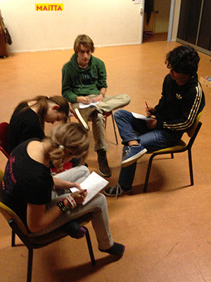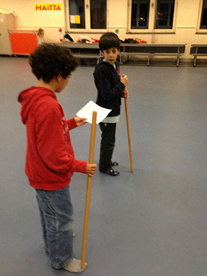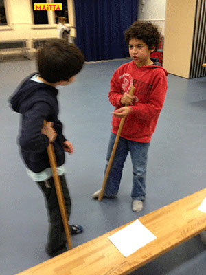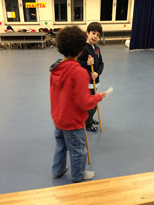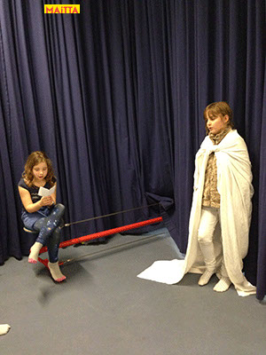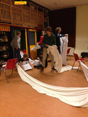 Nadat we elkaar wat beter hebben leren kennen en met allerlei basisoefeningen van de Maitta-speelstijl bezig geweest zijn, starten we nu met Shakespeare. We gaan stoeien met De Storm: we  spelen, bouwen, schrijven en fantaseren over tovenaars, varen, schipbreuk leiden, aanspoelen op een onbewoond eiland en we filosoferen over het koningschap.