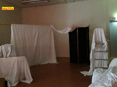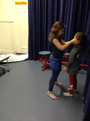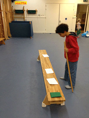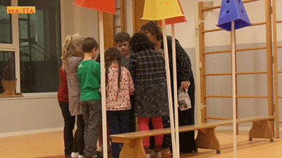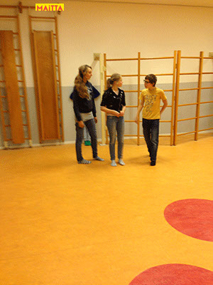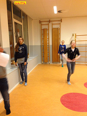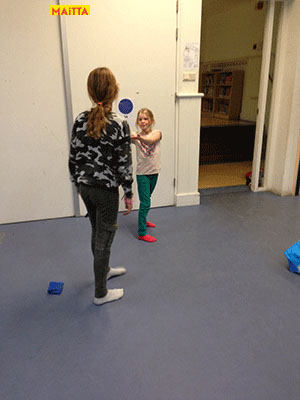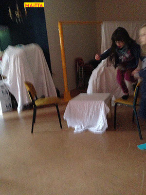 Bij het repeteren gaan we vaak ons speeldecor bouwen. Het samen proberen je fantasie drie dimensionaal te verbeelden is een oefening in samenwerken en een fijne spel warming-up. In dit tafereel hebben we een ‘spookherenhuis’ gebouwd. We waren namelijk tevoren samen naar een poppenvoorstelling in Theater Achterom gaan kijken. In de lessen erna hebben we met elkaar onderzocht en besproken wat we spannend en verrassend vonden aan deze voorstelling en aan het poppenspel in het bijzonder. We ontdekten onder andere wat voor invloed een decor op je ruimte-beleving kan hebben. Ook was het nieuw hoe er met geluid gewerkt was. In deze beeldfragmenten en het filmpje zie je hoe we hiermee gestoeid hebben. En natuurlijk werd het spelen helemaal fijn toen we alles donker gingen maken!