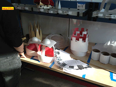 Maitta: Nadat de boterham is opgegeten komen de kinderen naar het speellokaal. Daar treffen ze meestal de start van een decor aan. Soms zijn er lijnen afgetaped op de vloer, soms staat er zomaar ineens een kasteel midden op de vloer. Ik probeer altijd iets te vinden wat hun nieuwsgierigheid wekt, waardoor hun fantasie geprikkeld wordt. Er volgt dan een korte uitleg, verpakt in een klein inleidend spel, zodat spelenderwijs de spelregels of kaders worden aangegeven waarmee de kinderen zullen werken. En meteen daarna kan ieder op zijn eigen manier aan de slag.