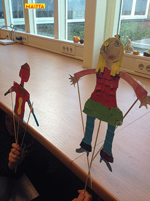 Vlak voor de voorjaarsvakantie werden in alle groepen poppenvoorstellingen gegeven aan ouders, opa’s en oma’s. In de week ervoor hebben ze als opening van de kunstweek zelf een poppenvoorstelling gezien. Daarna zijn ze in de groep, met hulp van Maitta (theaterschool in Hilversum) scripts gaan schrijven en poppen gaan maken. Op onze Facebookpagina staan foto’s van de poppen en de verschillende voorstellingen.