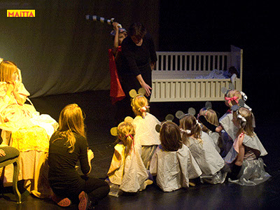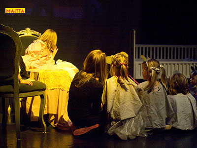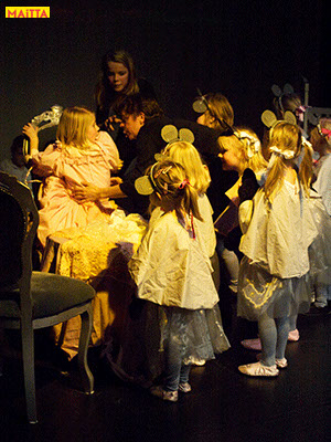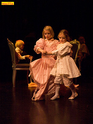 We hebben de voorstelling (van 16.00 uur) van de Notenkraker gezien. Ik vond het verhaal nogal abstract en niet aansluiten bij de dagelijkse (kleine) wereld van de kinderen die mee deden. Mijn verwachtingen bij kindertheater zijn verkleedpartijen, herkenbare situaties (huis, tuin, school, speeltuin, winkelen, vervoer, spelen bij vriendjes, televisie en computer), liedjes zingen en veel attributen. Ik kijk het daarom graag nog een half jaartje aan.