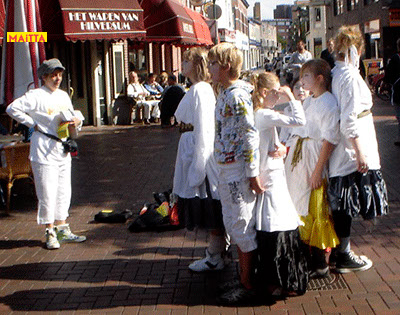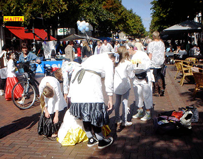 Met een ploeg van superlieve en enthousiaste leerlingen gaan we een hele middag straattheater maken op de Hilversumse Uitmarkt in september. Tijdens de repetitie hiervoor hebben we een verhaallijn bedacht en kostuums uitgezocht. Bovendien hebben we extra aandacht besteed aan de moeilijke elementen van spelen op straat: verstaanbaarheid, duidelijk spel, focus, improviseren, rolvastheid.