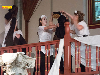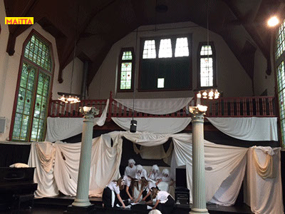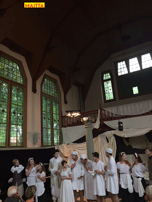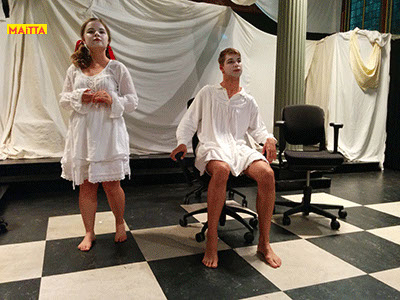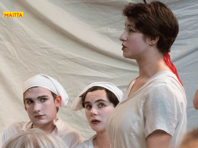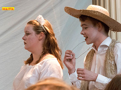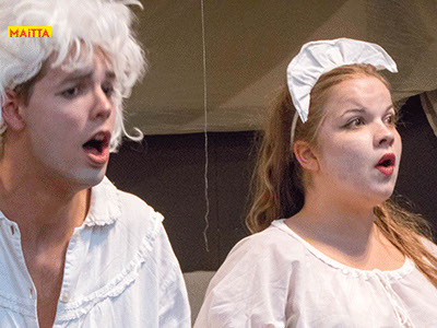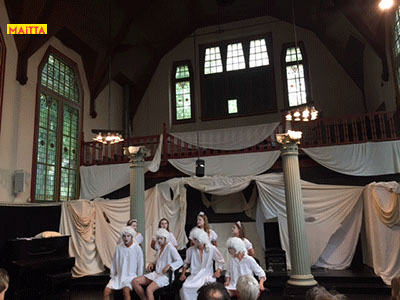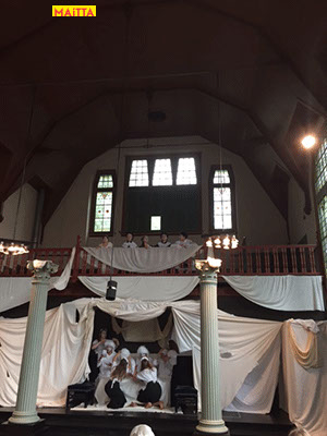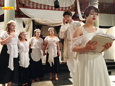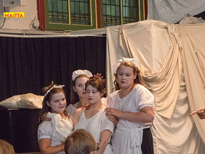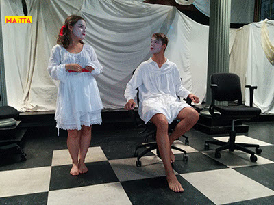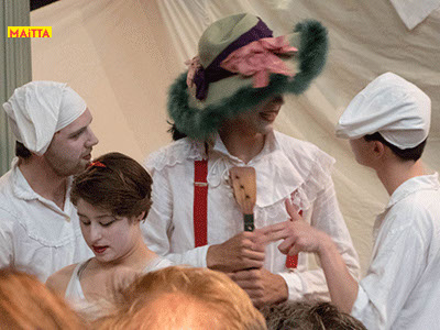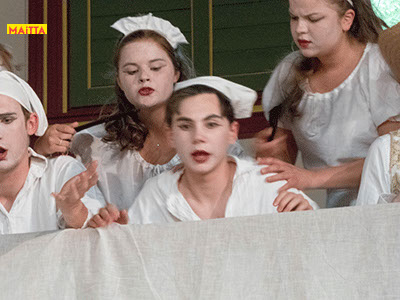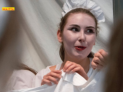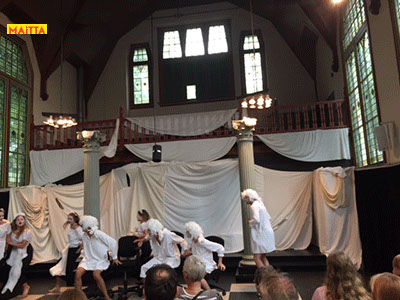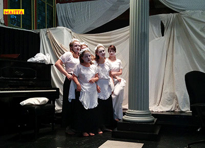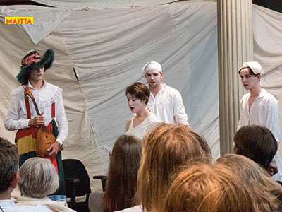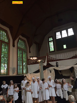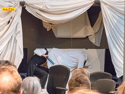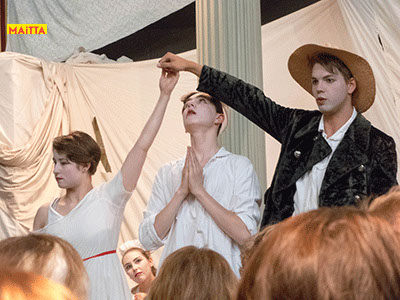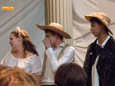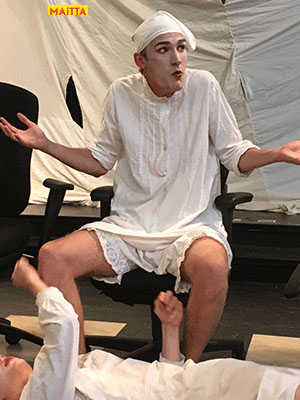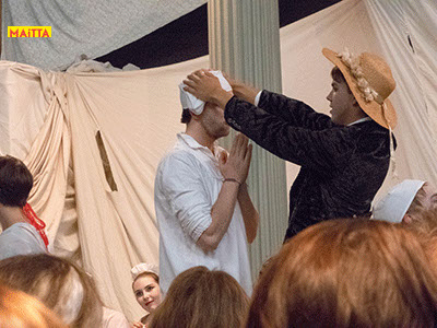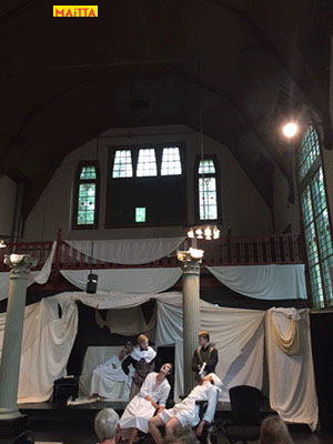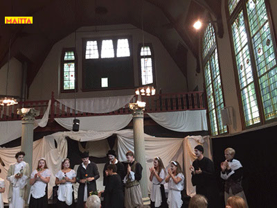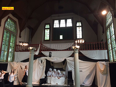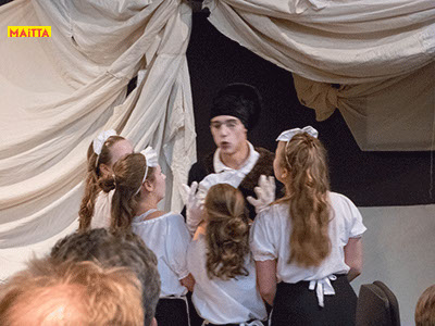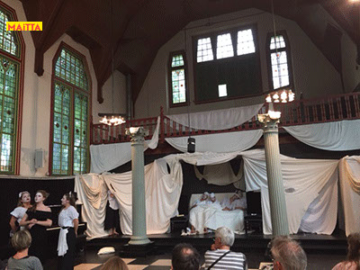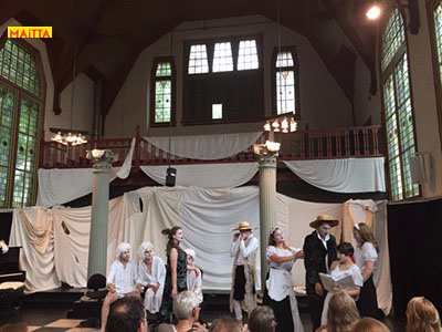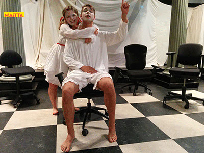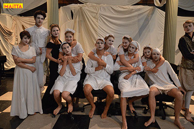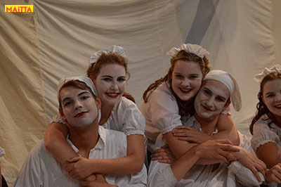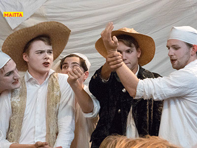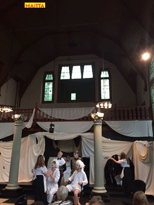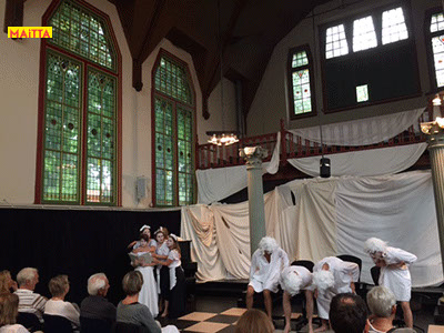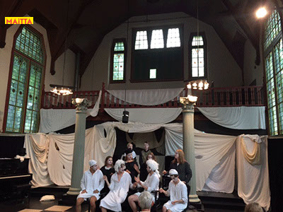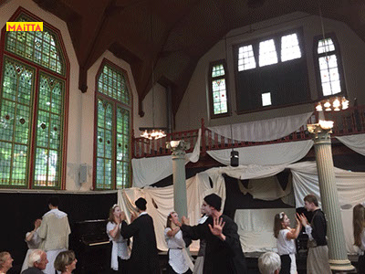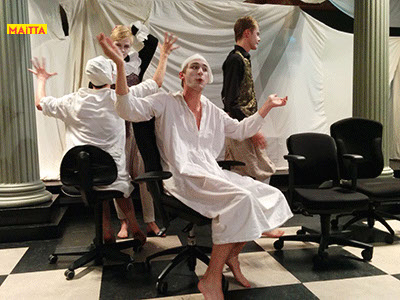 Met een doldwaas team een hilarische komedie neerzetten van Molière was een feest om te doen! Commedia dell’arte stijl vertaald naar groot spel in een decor van vergane glorie. Spelers die in 4-tallen één personage vertolkten. Solisten die door middel van diverse verkleedpartijen met kostuums die tijd en karakter accentueerden, meerdere rollen vertolkten. Scenes door de spelers zelf ontwikkeld en samen in een razende wervelwind tot een bomvolle vertoning gebracht.