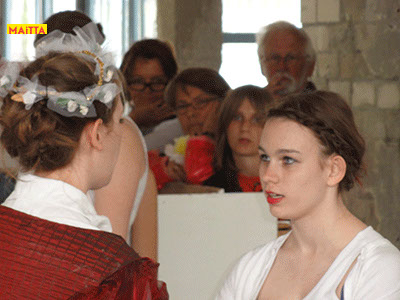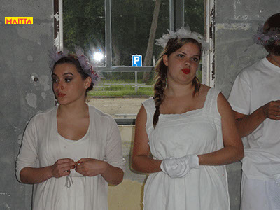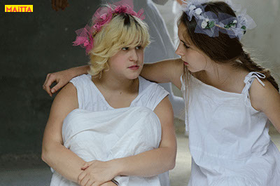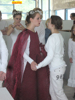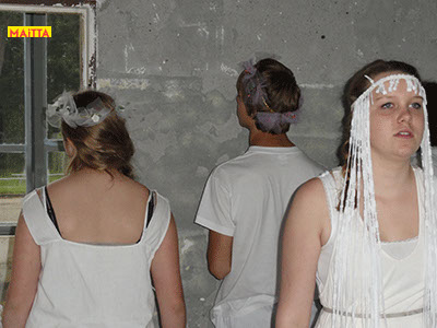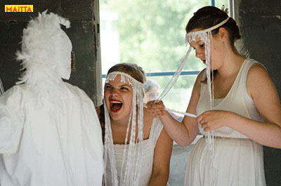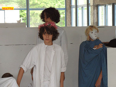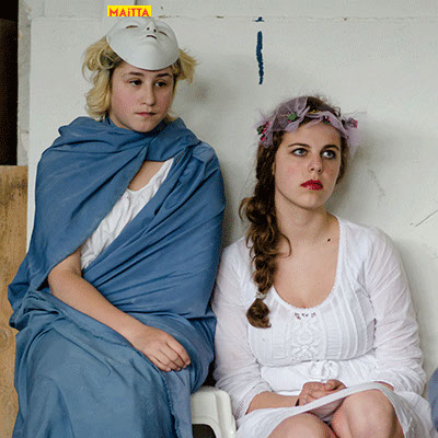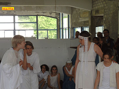 We hebben een periode van januari tot juni waarin we met alle groepen van de Jeugdtheaterschool samen één voorstelling gaan voorbereiden. Het wordt de voorstelling Iph & ik, geïnspireerd op het toneelstuk van Pauline Mol ‘Iphigeneia, koningskind’ en de teksten van Euripides. Het zal op 22 en 23 juni in de Beukenlaan en het Openluchttheater te Zonnestraal uitgevoerd worden. Het publiek loopt langs verschillende taferelen en maakt zo de vervloeking van Tantalus, het ontstaan van de twistappel, het Parisoordeel en uiteindelijk het onmogelijke offer van Iphigeneia mee.