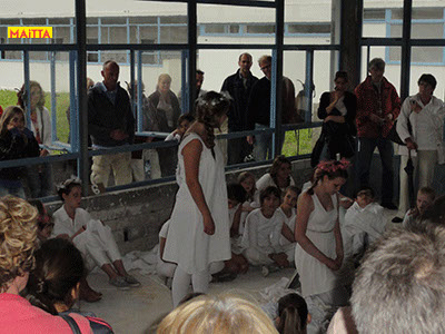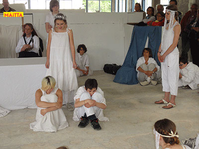 In het Openluchttheater van Zonnestraal zullen 5 groepen in de leeftijd van 8 tot 18 jaar een beeldende voorstelling laten zien van een oude Griekse tragedie.