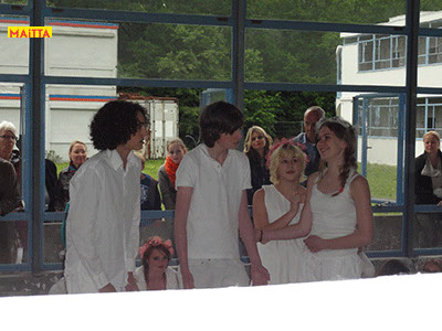 Ik wil je nog even laten weten dat we de voorstelling erg leuk vonden. Ook onze ouders hebben er van genoten. Chapeau! De opzet van zondag was inderdaad beter, de verschillende scenes waren beter te volgen. Wel liepen de groepen van 15 na een paar scenes gek genoeg helemaal door elkaar :-). Maar dat mocht de pret niet drukken. Q vond het ook helemaal leuk