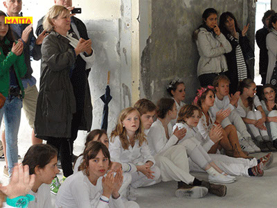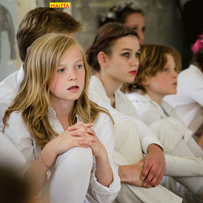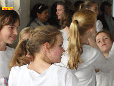 M heeft ervan genoten. Ze vond het dansen ook heel leuk en het meedoen met de groten. Zo mooi die trotse glimgezichten van de kinderen. Knap hoe je alles georgaiseerd had en zo kalm bleef! De muziek erbij was ook mooi en de Maitaart heerlijk. Eigenlijk wilde ik broertje T zondag niet meer mee laten gaan omdat wij het zaterdag al gezien hadden, maar hij wilde perse weer mee. Dus ook voor zeven-jarigen was er genoeg te genieten. J vond het ook mooi. Ze bekeken alles heel aandachtig.