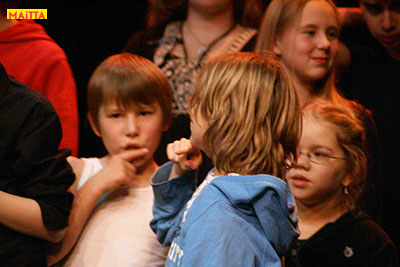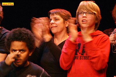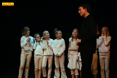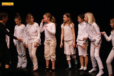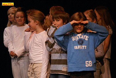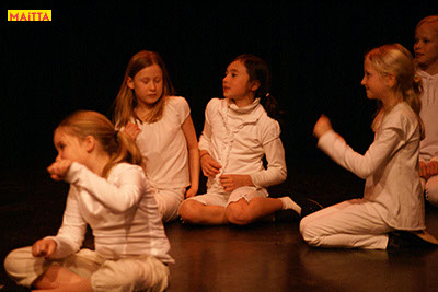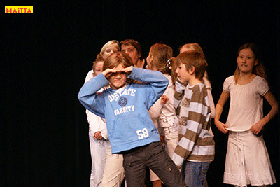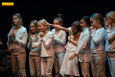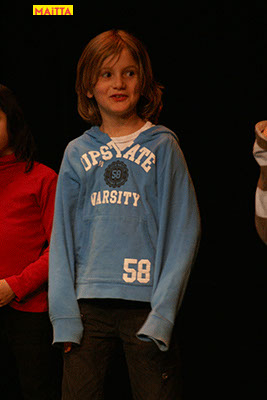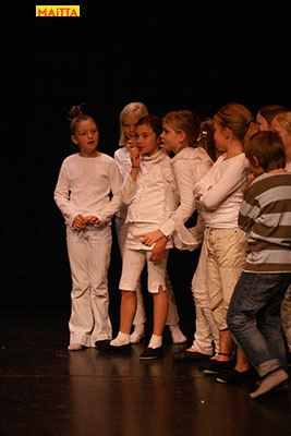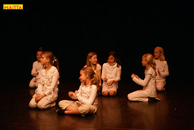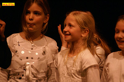 Zij spelen een sprankelende mini-presentatie: aansluitend mogen de kinderen uit de zaal ook meedoen want dan komt er een kleine workshop gegeven door de oudste leerlingen van Jeugdtheaterschool Maitta.