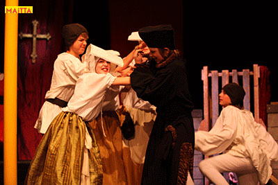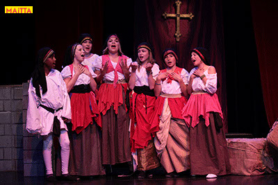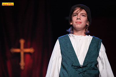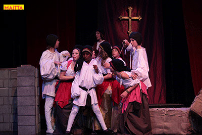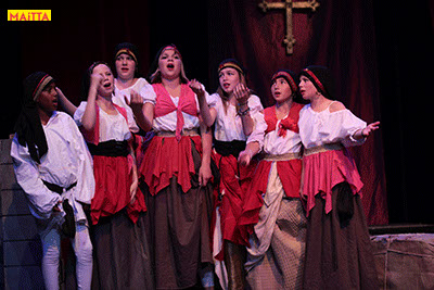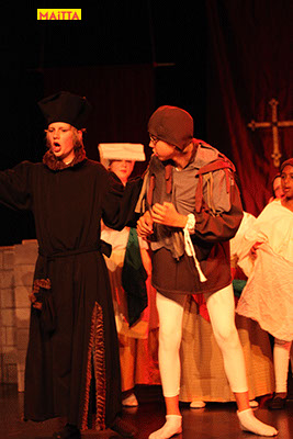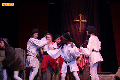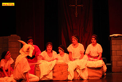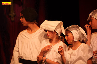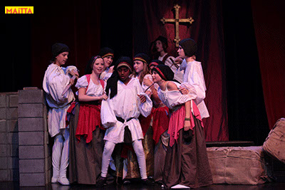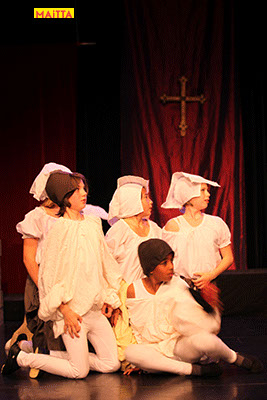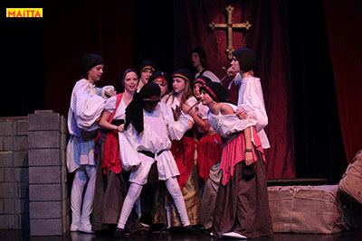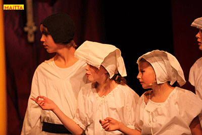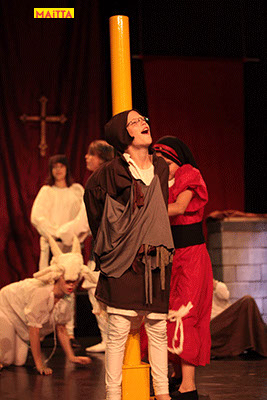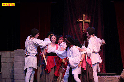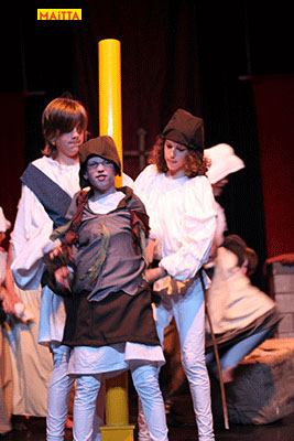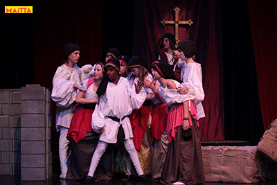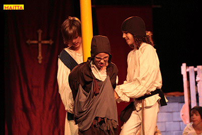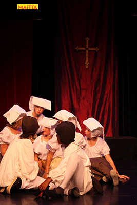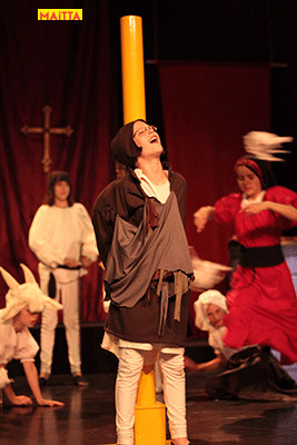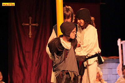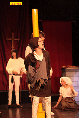 De voorstelling is een vrije bewerking van het oorspronkelijke verhaal van Victor Hugo en gaf ons de kans in de wonderlijke wereld van de middel-eeuwen te duiken. Ongeveer vijftig leerlingen van 6 tot 12 jaar, zijn verdeeld over drie groepen en vertolken de vele rollen die in dit verhaal voorkomen. Om een beeld te krijgen van die tijd hebben we kunstboeken bestudeerd, veel geïmproviseerd en verhalen met elkaar gedeeld over onze kennis over die tijd en natuurlijk de Notre Dame en Parijs. Kostuums werden door ouders speciaal gemaakt, Reinhout Hofstede componeerde en schreef de vele liedjes.Het totaal belooft een kleurrijk spektakel te worden!