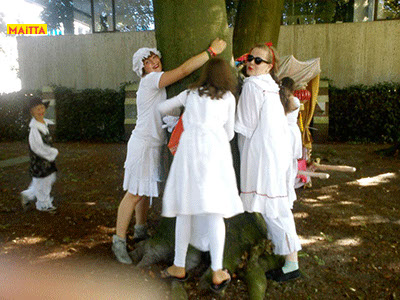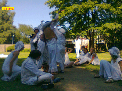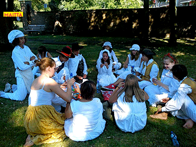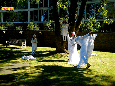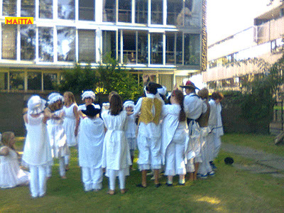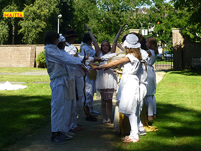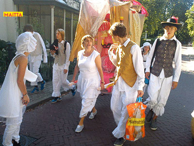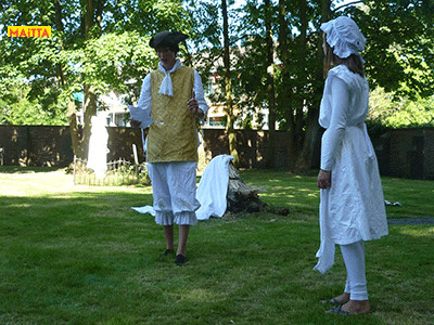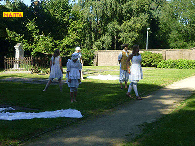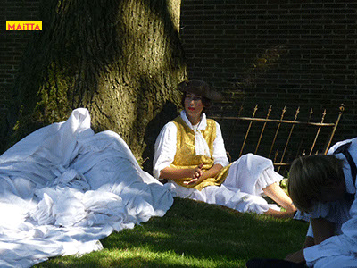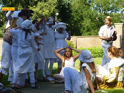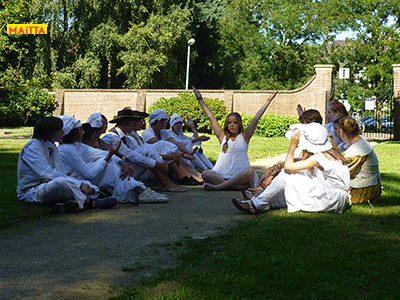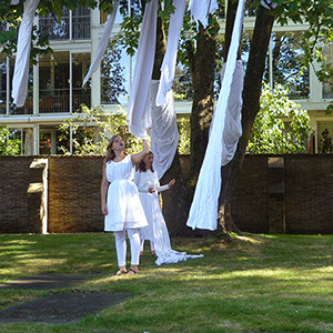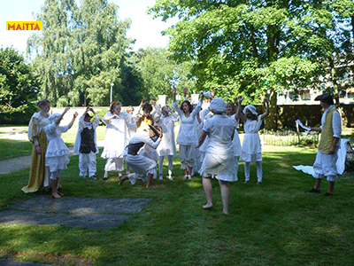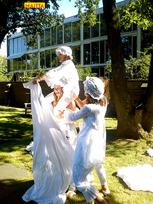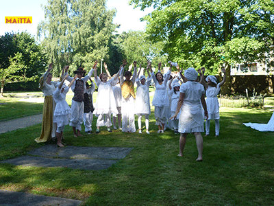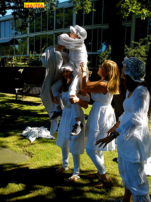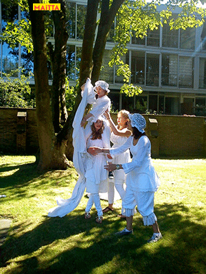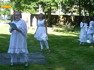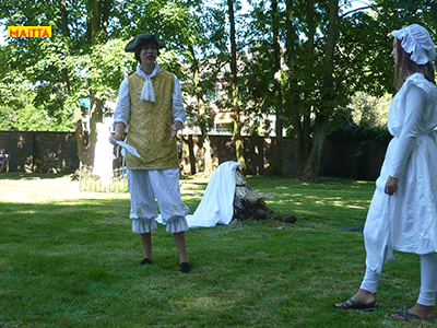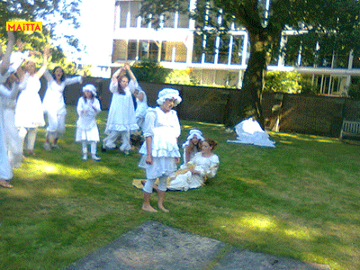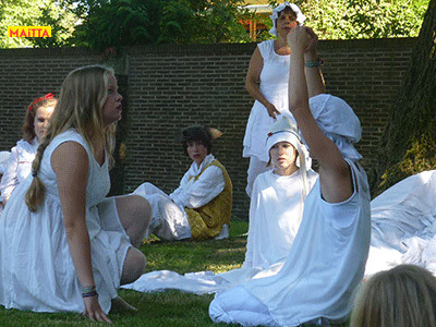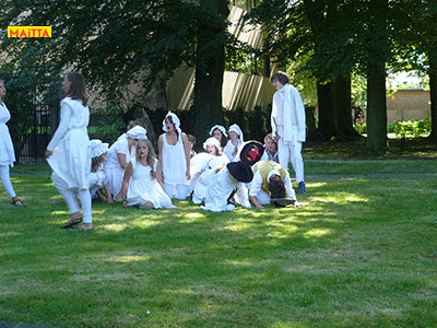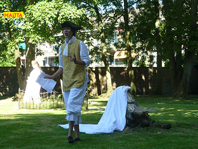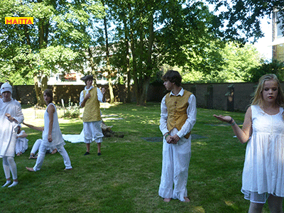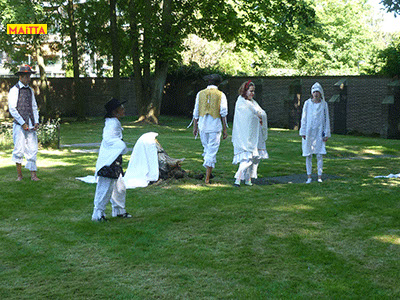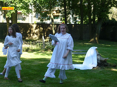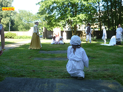 Jeugdtheaterschool Maitta heeft met een grote groep enthousiaste leerlingen twee voorstellingen gespeeld: één buiten in het groen van de oude begraafplaats Gedenkt te sterven in hartje Hilversum, en één binnen in de ontvangstzaal van het oude Postkantoor op de Brink.