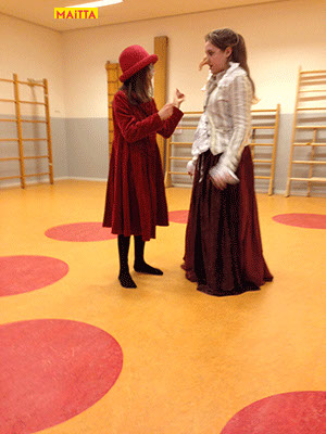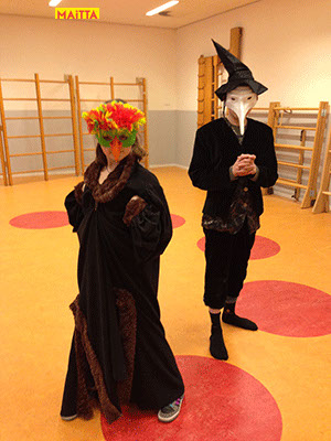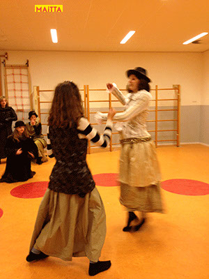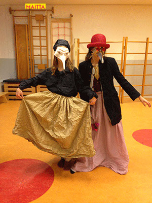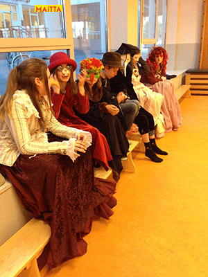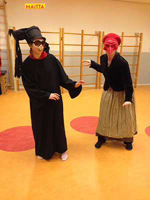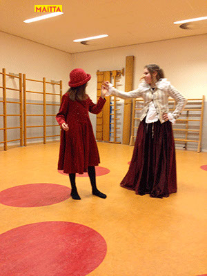 Tijdens de lessen wordt er veel geƫxperimenteerd met decor en kostuums.