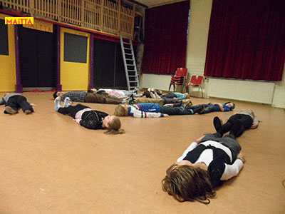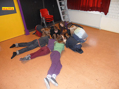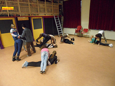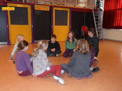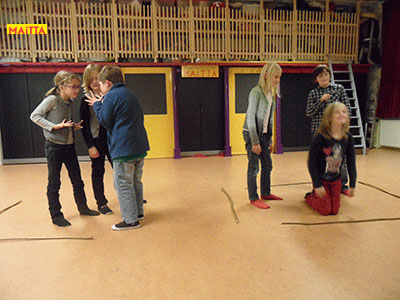 We starten met het project Oliver Twist, wat we op de kerstfair van Zonnestraal zullen gaan spelen.We weten dat ons podium heel klein zal zijn: een hutje midden in het bos! Daarachter zal er een tweede hutje zijn waar alle 5 de groepen zich om beurten om kunnen kleden. Deze dag wordt nou echt een ‘uitdaging’ voor ons! Eerst maar eens kijken wat we met het stuk gaan doen. Op de foto de eerste verkenningen van de verschillende personages die in het stuk meedoen.