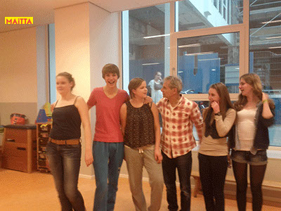 Het is prachtig om te zien hoe de jubileumworkshops de leerlingen inspireren, hoe ze alle informatie in zich opnemen en er vervolgens in de gewone lessen zelf mee aan de slag gaan. De één was onder de indruk van de coulisse en de attributen bij de Hema musical, de ander vroeg de beroemdheden de oren van het hoofd over dat beroemd zijn. En de volgende zie ik stoeien met het nieuwe materiaal. Deze serie heeft echt goed gewerkt en ik ben achter de schermen al weer hard aan de slag om dit te evenaren in het seizoen 2013-2014. Waarschijnlijk krijgen we dan masterclasses per cursusgroep!’