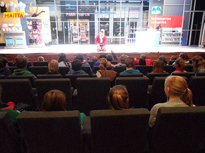Zijn les stond in het teken van ieders persoonlijke podiumaanwezigheid, en het versterken daarvan door middel van verschillende oefeningen.