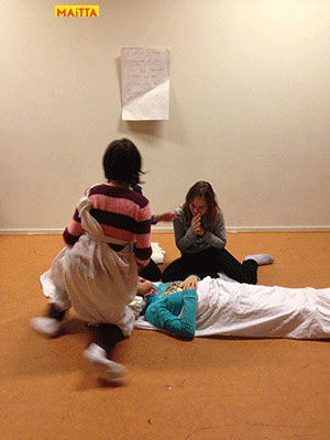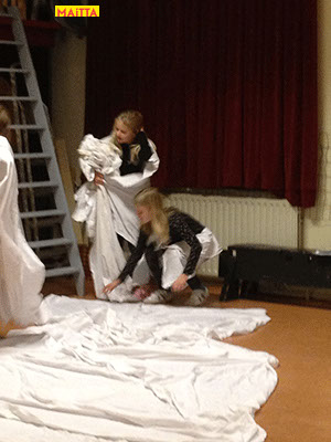 Hier zien we de dood van de koningin en de valse broer, gespeeld door een meisje. Ariel wordt als rol onderzocht en het spelen met de zee.