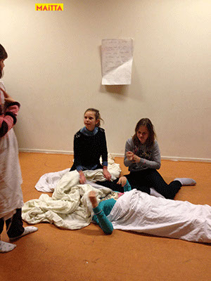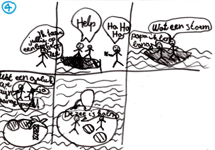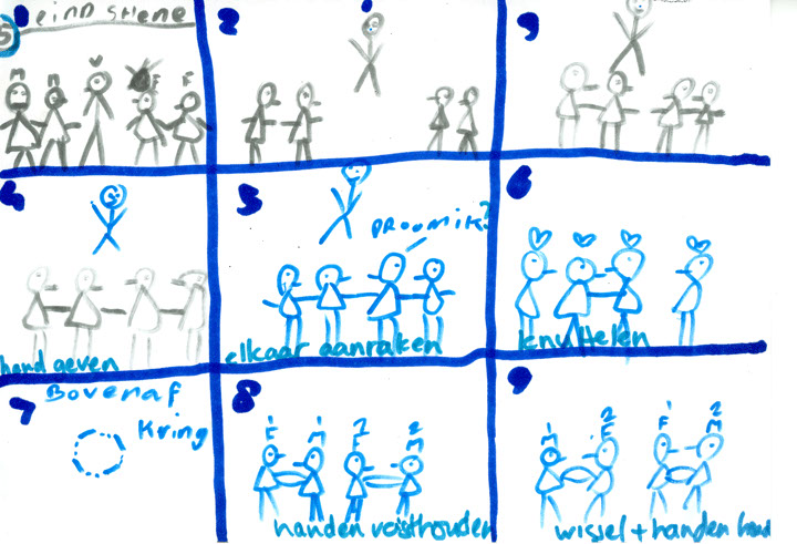 In verschillende groepjes gaan de leerlingen scenes onderzoeken van De Storm.