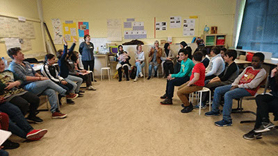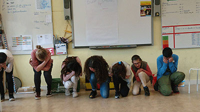Dramalessen oktober voor ROC leerlingen Welzijn, te Hilversum met als onderwerp: hantering van emoties en conflicten, houding, rollenspel.