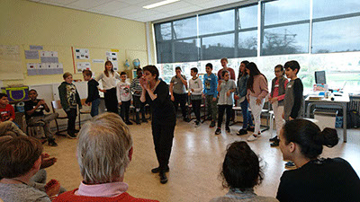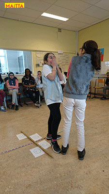 Maitta gaf op OBS de Dubbeldekker in Hilversum voor IMC Basis twee workshops Theater aan groep 7/8. Wat een succes! Maitta straalt enorme rust uit en weet wat ze doet. Ze maakt tijdens de workshop echt contact met de leerlingen. In de workshops zat een heel mooie opbouw die begon met emoties benoemen, herkennen en uitbeelden. Als afsluiter vertelden de leerlingen samen voor publiek een persoonlijk verhaal in beelden. Echt een aanrader!