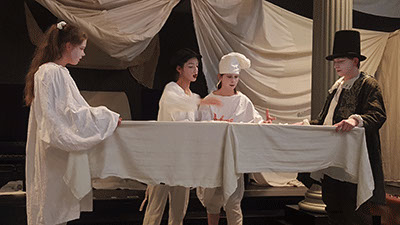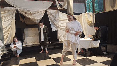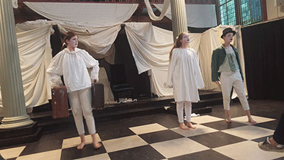 Heerlijk toeven in andere tijden, spelen met commedia dell’arte ingrediënten, samen het ritme vinden van de vertelling, die luchtig maar eigenlijk ook heel complex is. Dat was een super fijne klus die geklaard werd door een grote groep jongeren. Rolwisseling, samenwerken, verbeelden en timen waren de uitdagingen van dit jaar.