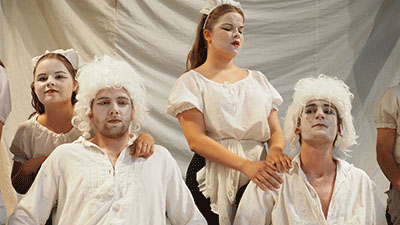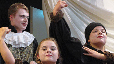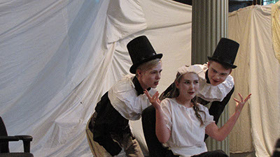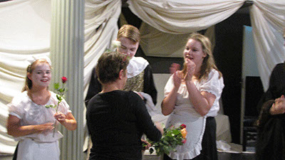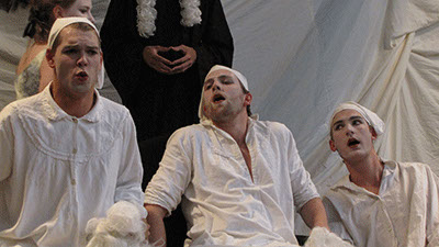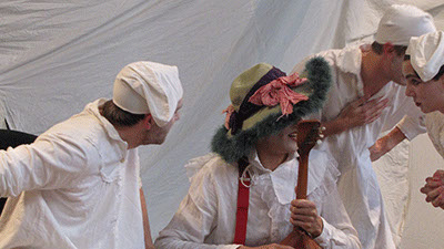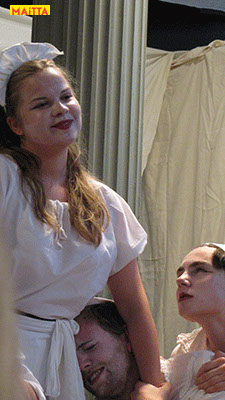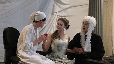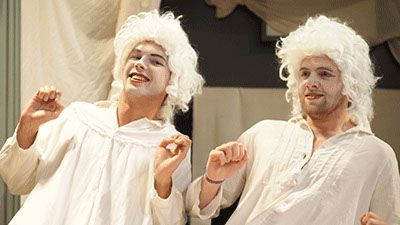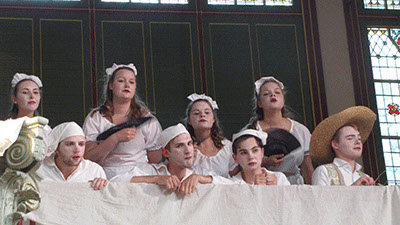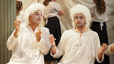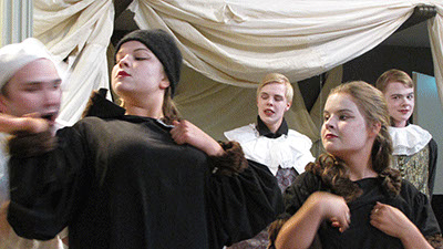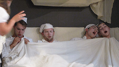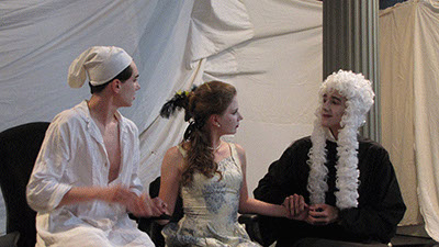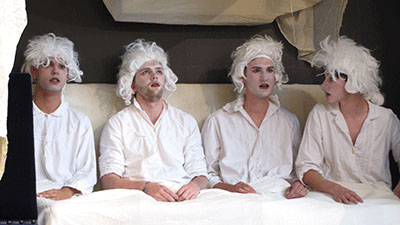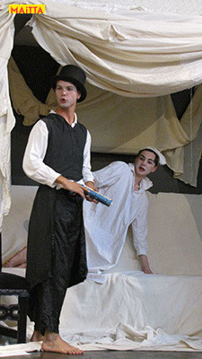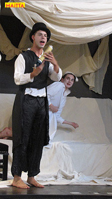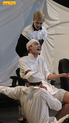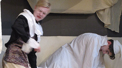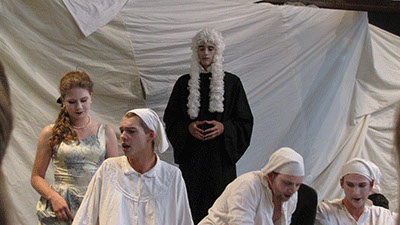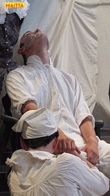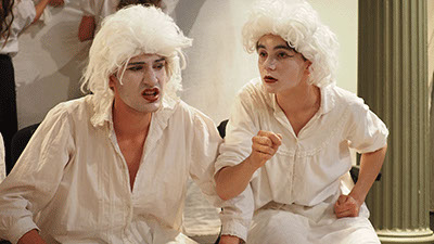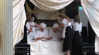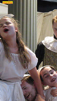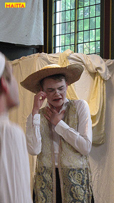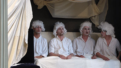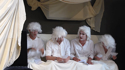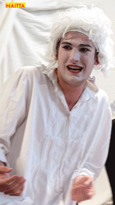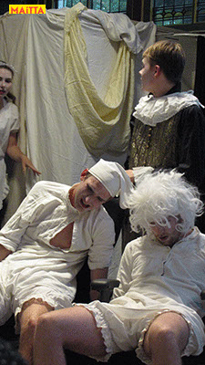 Met een doldwaas team een hilarische komedie neerzetten van Molière was een feest om te doen! Commedia dell’arte stijl vertaald naar groot spel in een decor van vergane glorie. Spelers die in 4-tallen één personage vertolkten. Solisten die door middel van diverse verkleedpartijen met kostuums die tijd en karakter accentueerden, meerdere rollen vertolkten. Scenes door de spelers zelf ontwikkeld en samen in een razende wervelwind tot een bomvolle vertoning gebracht.
