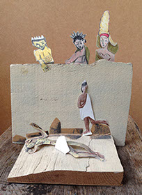 Na het doorspreken van de tekst gaan ze een aantal lessen werken met verschillende spelmaterialen als startpunt om tot spel te komen. Zo werken ze met o.a. kranten, lappen, muziekfragmenten, geluid, gedichten, fotomateriaal, kledingstukken, attributen, maskers enzovoort.