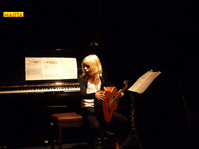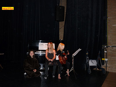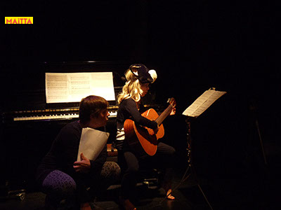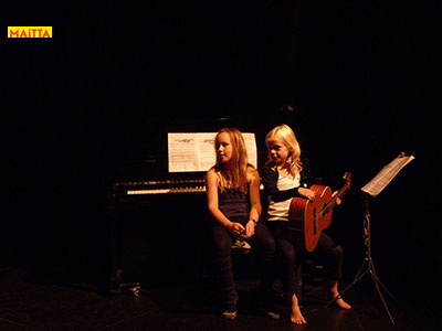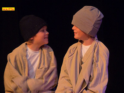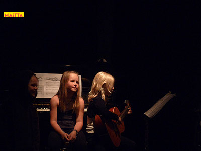En dan is het zo ver: we gaan optreden! Moeilijk om alles te onthouden en spannend wie er straks allemaal komt kijken, maar uiteindelijk zijn we er klaar voor. Uiteindelijk staan we in Theater Achterom, geschminkt en wel, ondersteunt Hannah ons met livemuziek op haar gitaar en spelen we: Op & In het Nieuws!